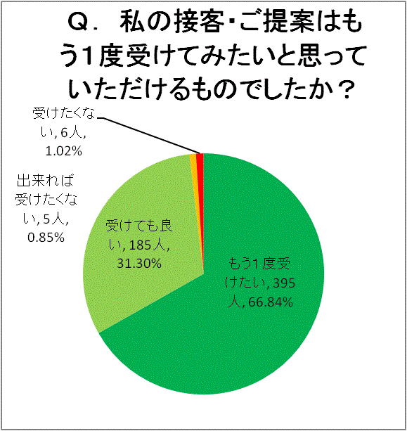 すごく良い接客で来店してよかった。1回目来店する時にはドキドキしたが、2回目は気分も良く来店できた。ぜひ知人にも紹介したい